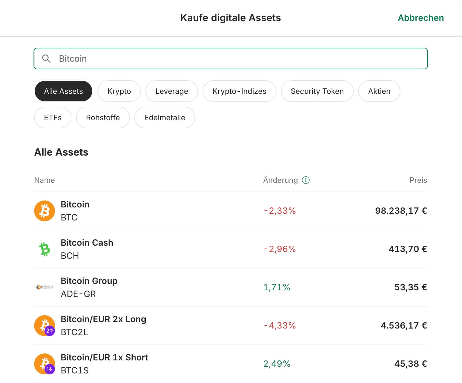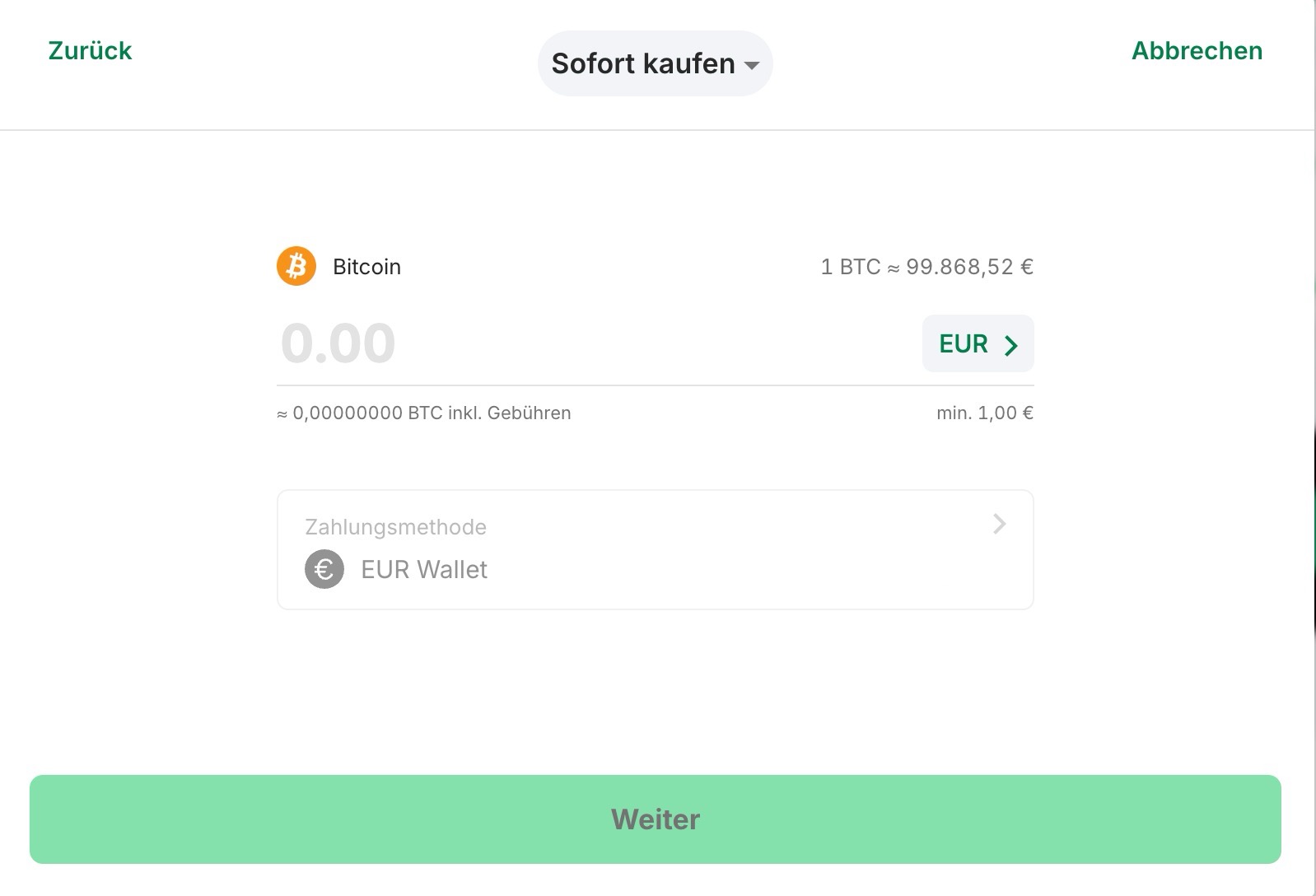 Sobald das Guthaben verfügbar ist, kannst Du Deinen ersten Bitcoin kaufen.